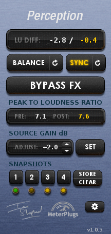 "We've been delighted with the response to Perception", says Ian Kerr of MeterPlugs. "People seem to instantly 'get' why it's so powerful. The realtime level-matching allows you to quickly and easily see how your music stands up against the competition. And the sync is rock-solid, even with external hardware."